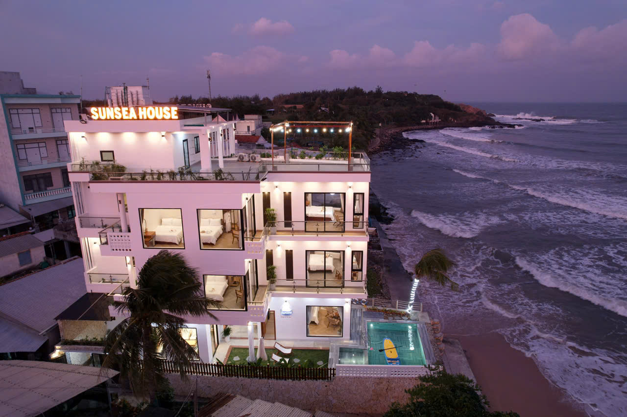 Từ việc đưa ra ý tưởng cho thiết kế bản vẽ ưu tiên cho khung cảnh bao quát đại dương ngay tại giường ngủ, đến việc chọn từng viên gạch, màu sơn chất lượng, nội thất cao cấp mà gần gũi, cùng với sự kết hợp không gian xanh mát của sân vườn , quý khách sẽ được hoà nhập hoàn toàn với thiên nhiên, biển cả. Đứng giữa phòng của Sunsea House như đứng giữa biển khơi, như được ngồi ngắm trăng rơi bên bãi biển.